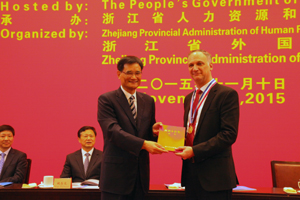 近日,浙江省政府隆重表彰2015年浙江省外国专家“西湖友谊奖”。杏盛娱乐美国专家葛俊(Jim Geisendorfer)等30名外国专家受到表彰。 出席表彰会的浙江省副省长熊建平在致辞中指出,积极引进国外人才智力是我国对外开放的重要内…
